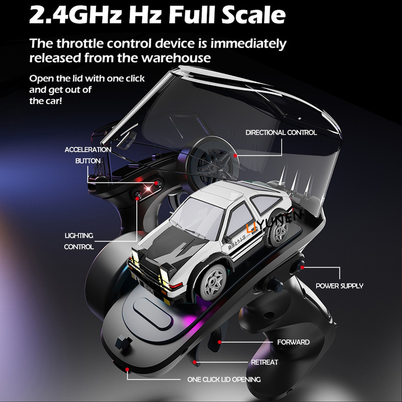 1:64 Desktop Mini RC Drift Car AE86 Model 4WD Full Proportional Throttle Remote Control 1/64 Small Racing Car for Adult Kids Toy Gift