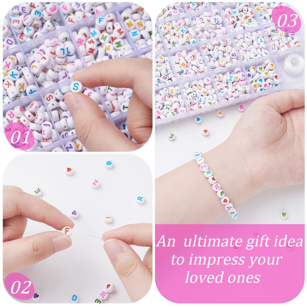 1 BOX (28 GRID SINGLE LETTER) MANIK ABJAD/ ALPHABET BEAD BULAT SAIZ 4 * 7