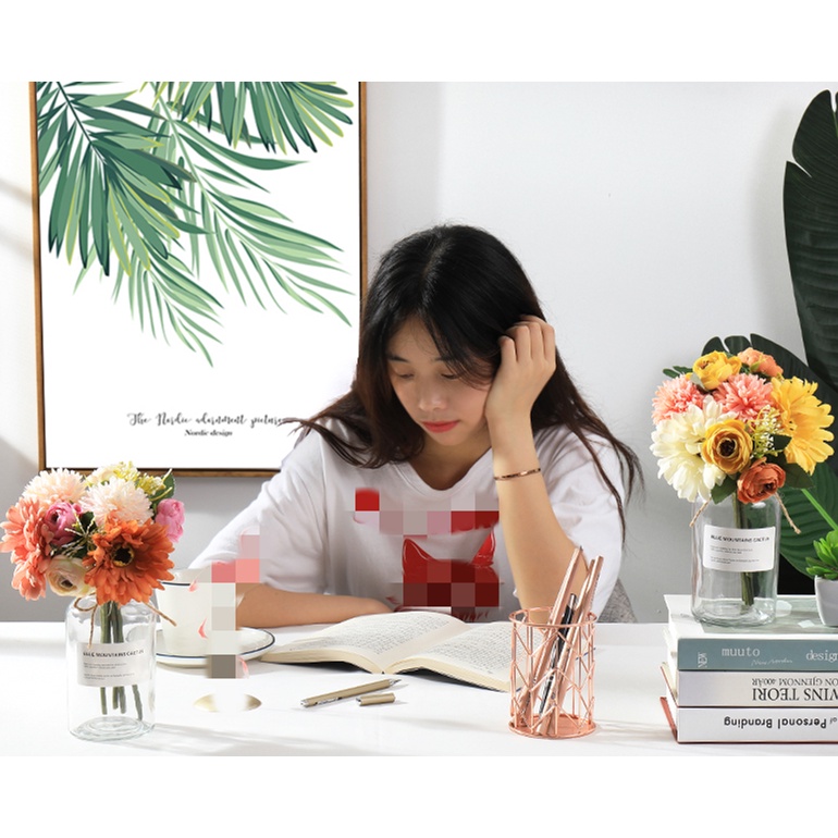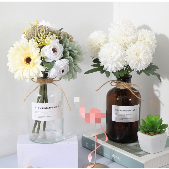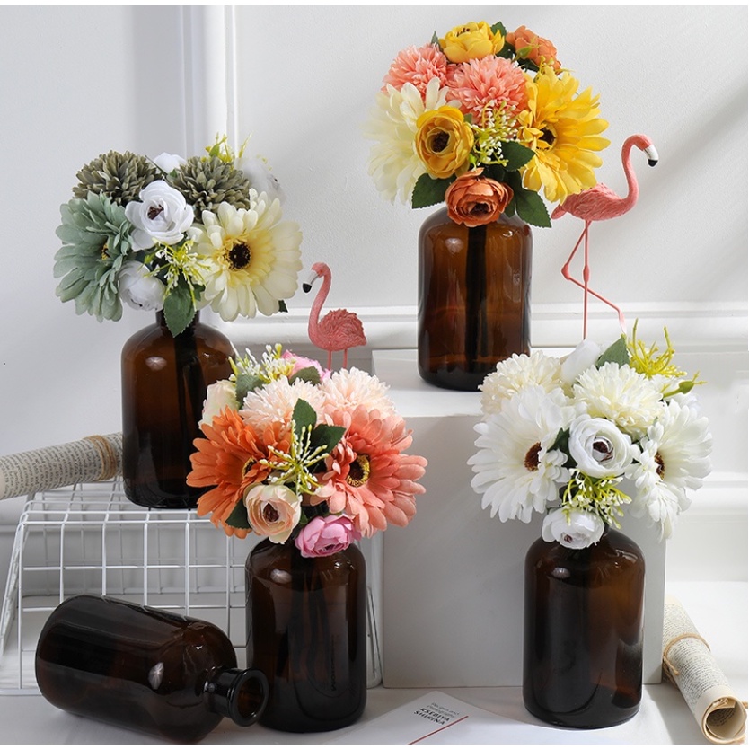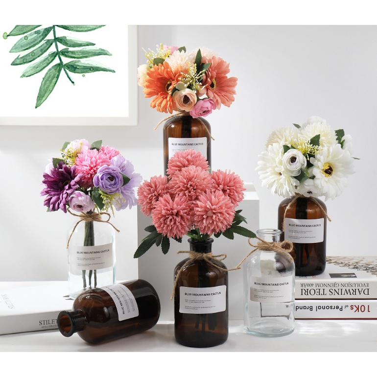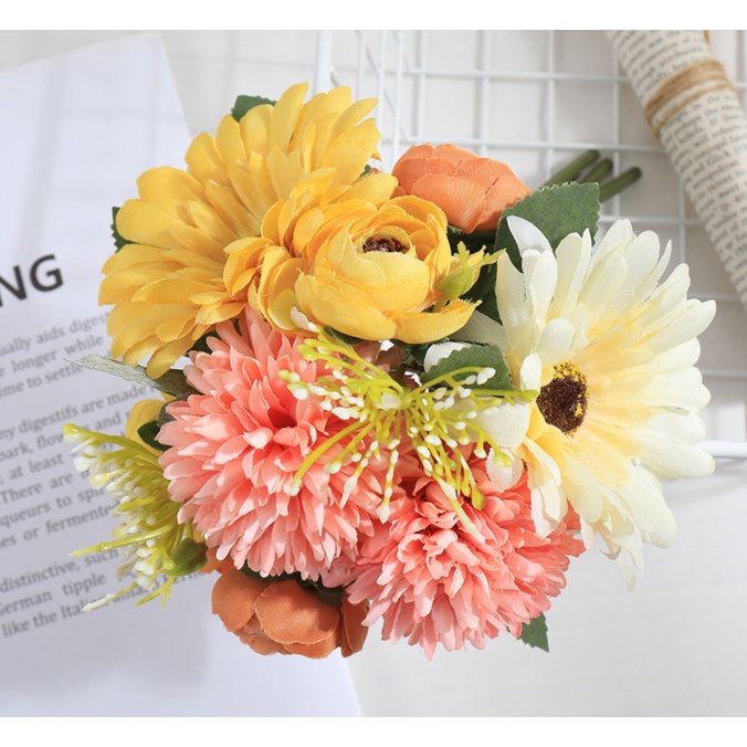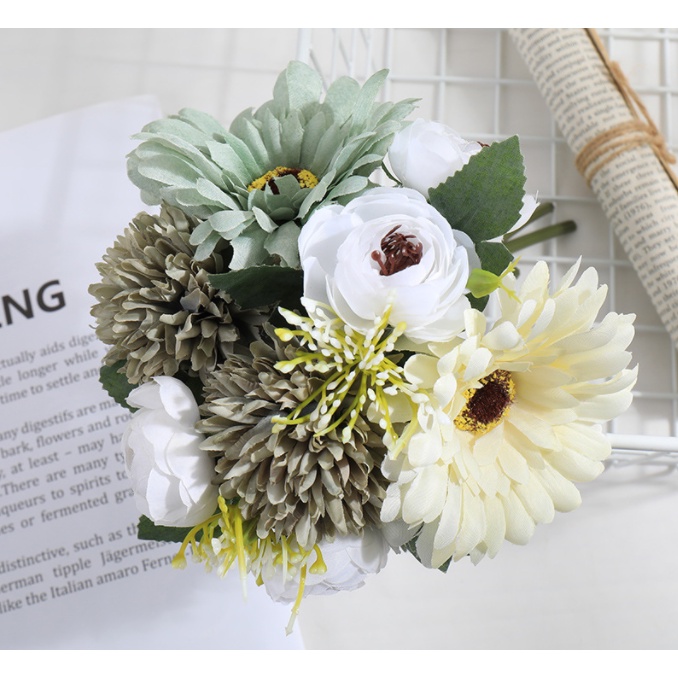 1 Bouquet Artificial Flower Rose Gypsophila Lily Dandelion Peony Combination Bouquet Fake Flowers Wedding Home Decoration