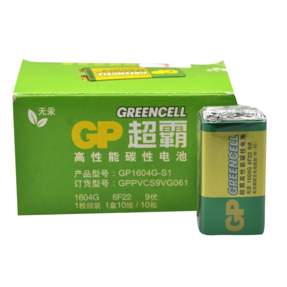 1 Box 10 Pieces - 9v Battery - GP Greencell Battery - Super Heavy Duty SuperCell Battery