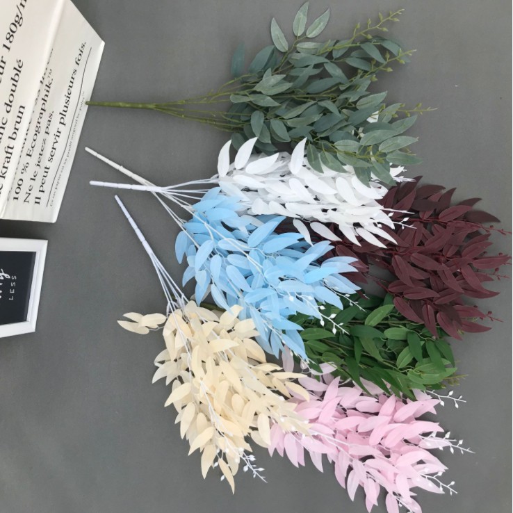 1 Bunch(175 PCS LEAVES) Willow Leaves Bunch Green Artificial Plants Fake Flower Leaf Foliage Bush Home Office Garden Dec