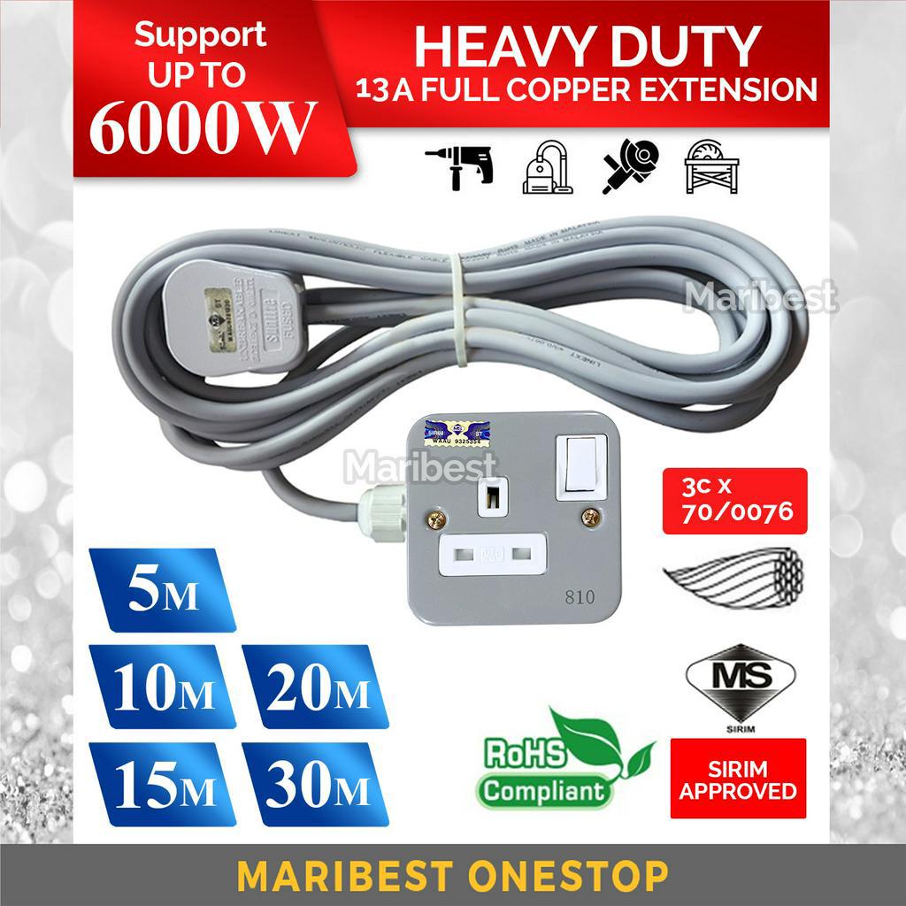 1 GANG HEAVY DUTY SINGLE SOCKET 70/0076 3C CABLE EXTENSION TRAILING SOCKET METAL CLAD CABLE PLUG SUPPORT UP TO 6000W