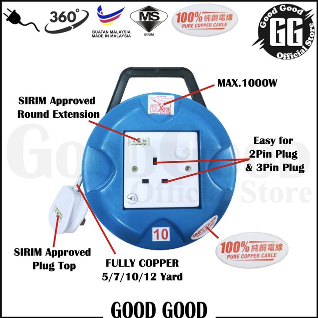1 Gang Round Extension Trailing Socket Wire Box5METER / 10METER (3C 23/016 40/016 CABLE) 5/7/10/12 yard (SIRIM APPORVED)