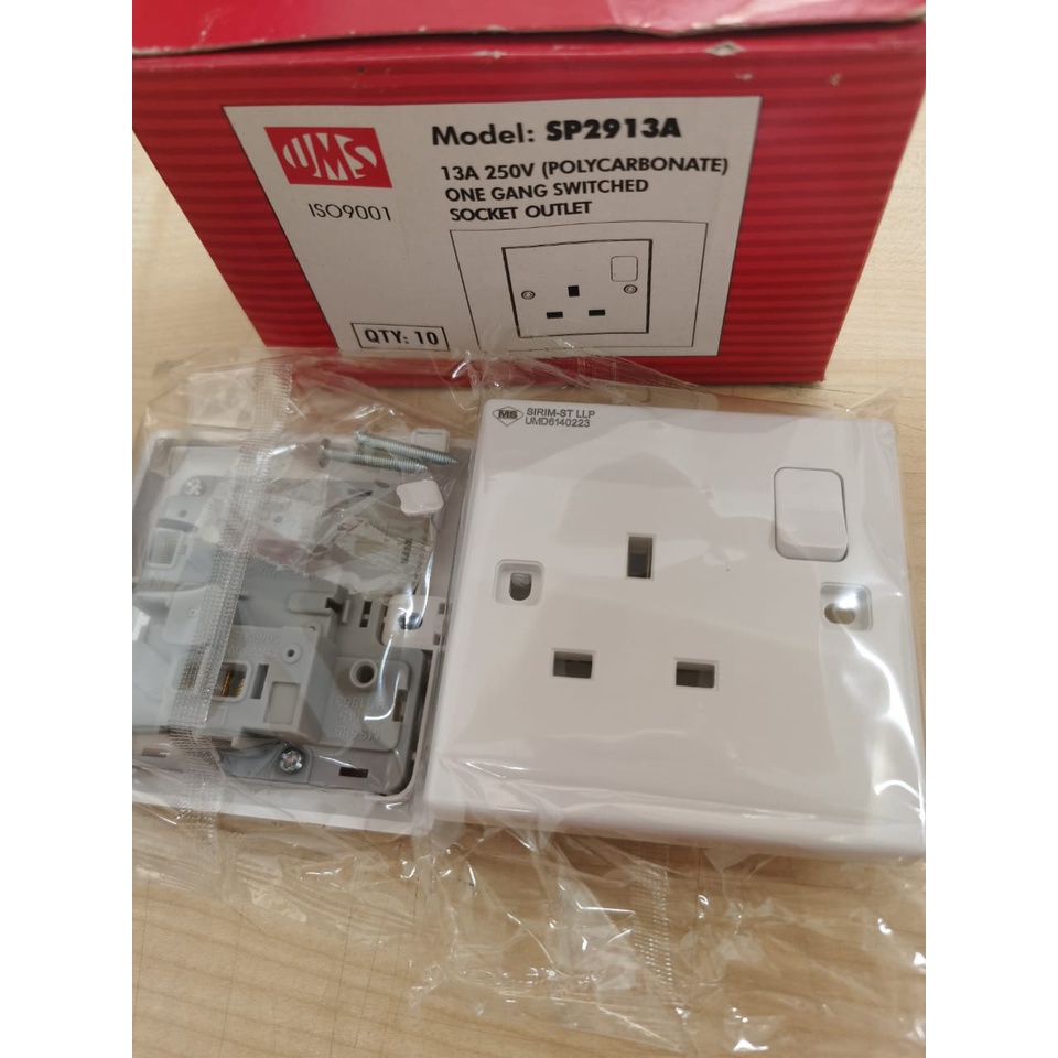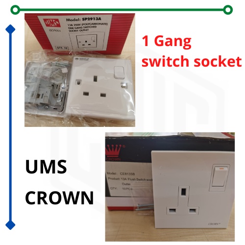 1 Gang Switch Socket 13A 250v UMS CROWN Polycarbonate PCS per pc