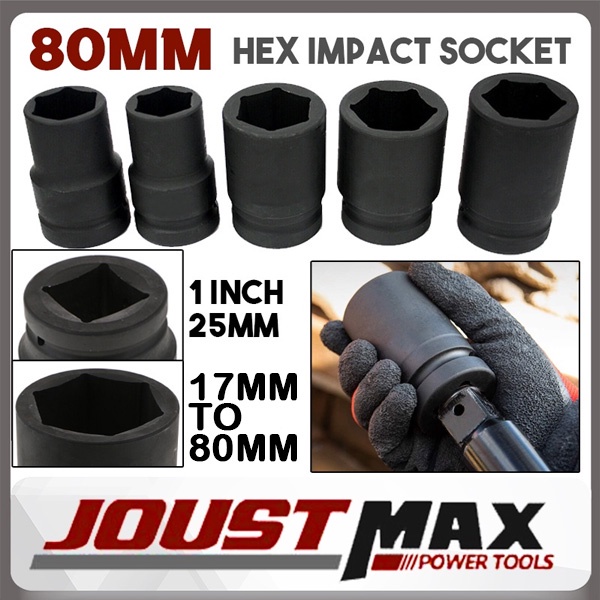 1 INCH X 80MM BLACK HEX IMPACT SOCKET BOX SOCKET 17MM TO 80MM IMPACT WRENCH ADAPTER AUTOMOTIVE TOOL CR-MO