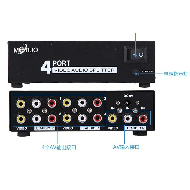 1 In 4 Out RCA Composite AV Splitter Amplifier for TV Box HDTV DVD