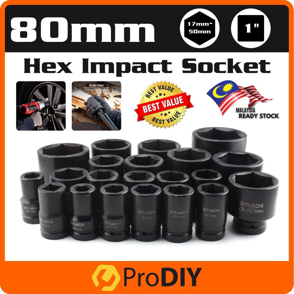 1 Inch x 80mm Hex Impact Socket Black 17mm to 50mm Wrench Adapter Automotive Tools Tire Repair Nut CR-MO