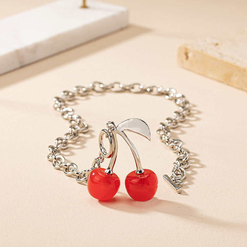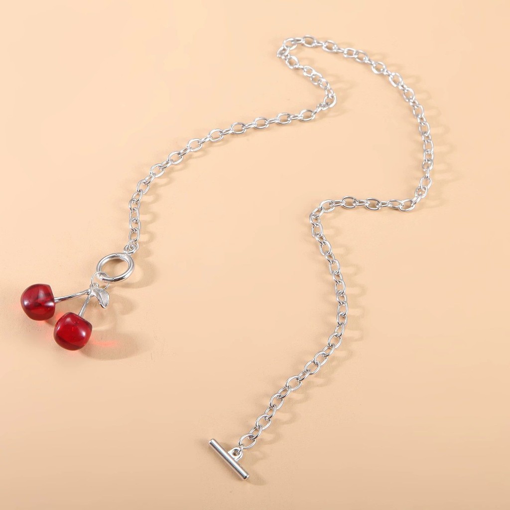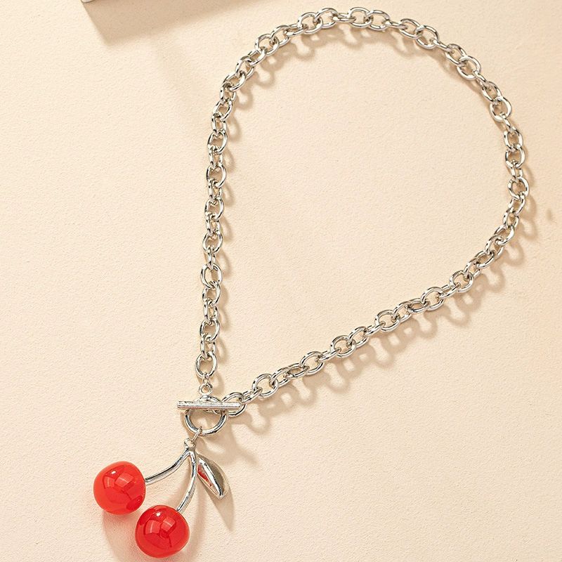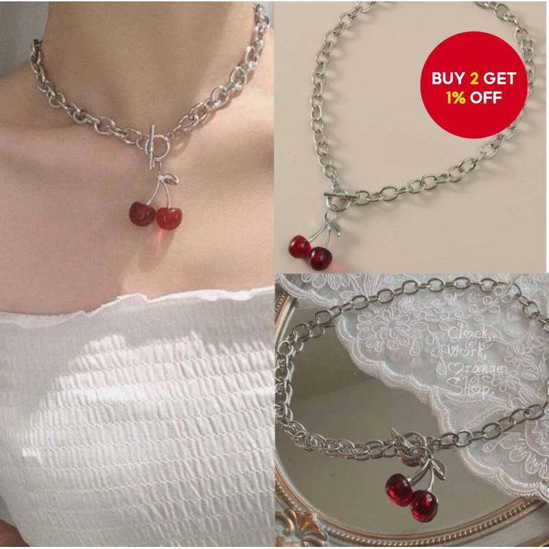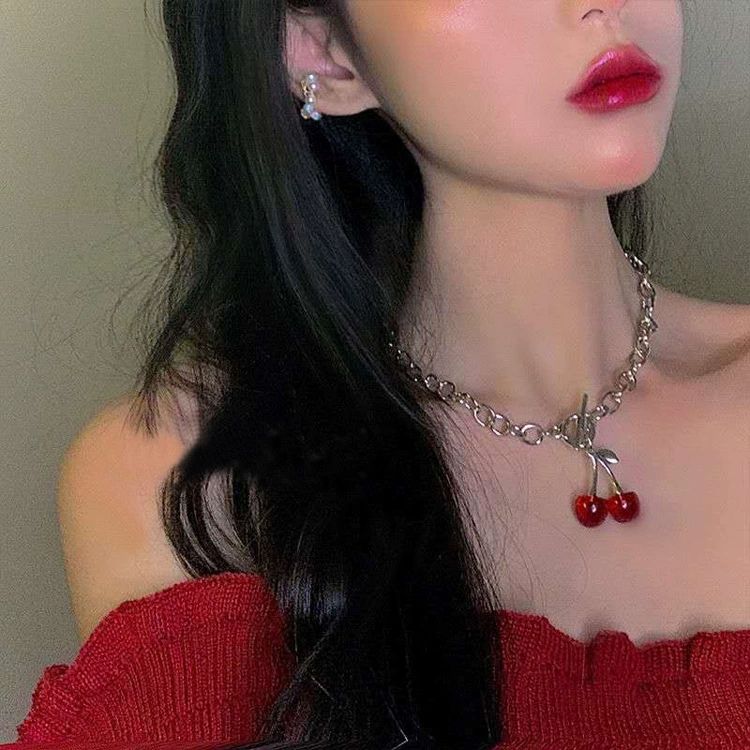 Gothic Cherry Pendant Necklace for Women Hip Hop Retro Collarbone Chain Jewelry