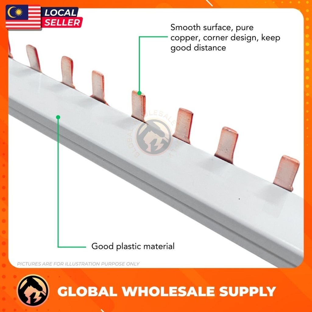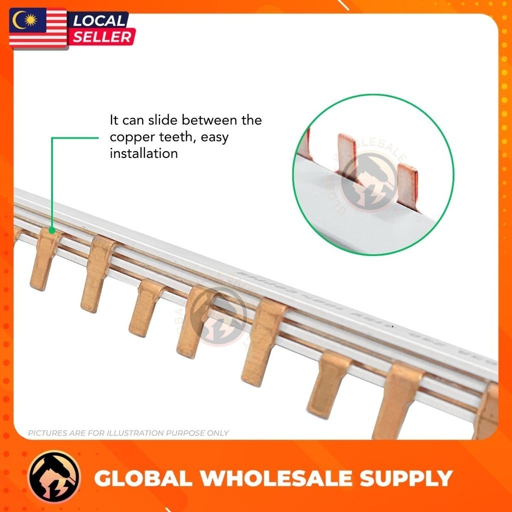 1 METER 3 POLE MCB BAR 54 PIECES Full Copper PVC Insulated Three Phase MCB Connector Bus Bar Copper Bar 63A 240/415V