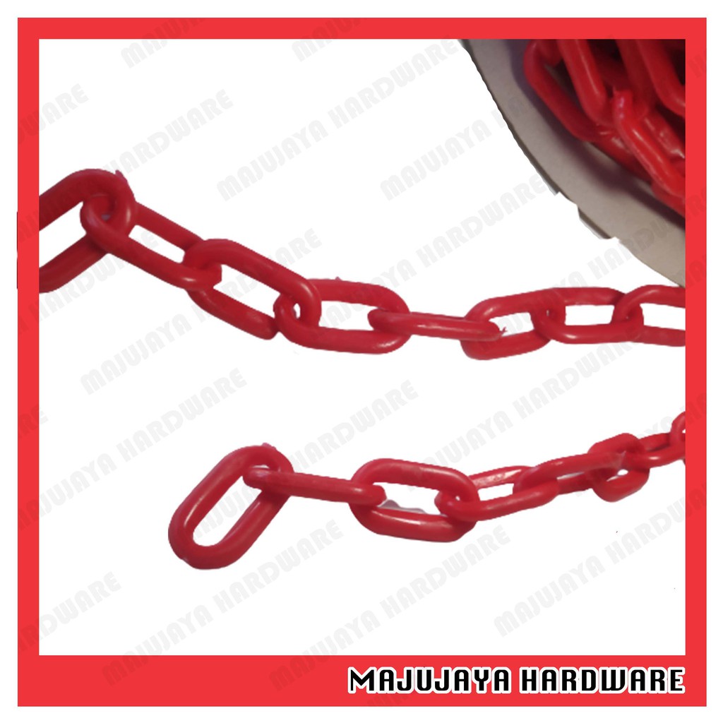 1 METER PVC Plastic Link Chain 6mm 1/4'' Red PVC Plastic Chain Rantai Plastik Barricade