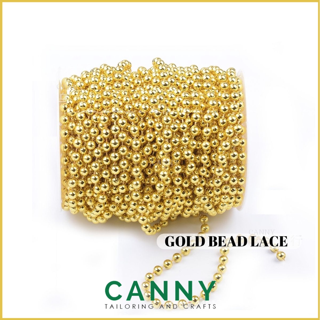 1 Meter Gold Silver Bead Lace 4mm / 5mm / 6mm / 8mm Round Loose Beads DIY Handmade Renda Untuk Gubahan Jurai Bead 500g