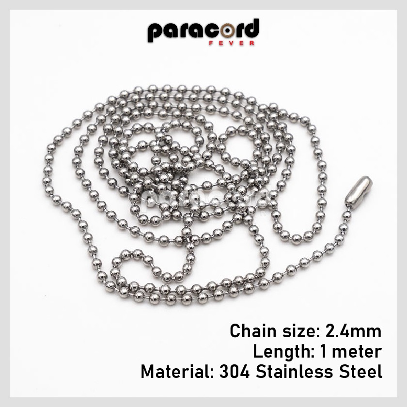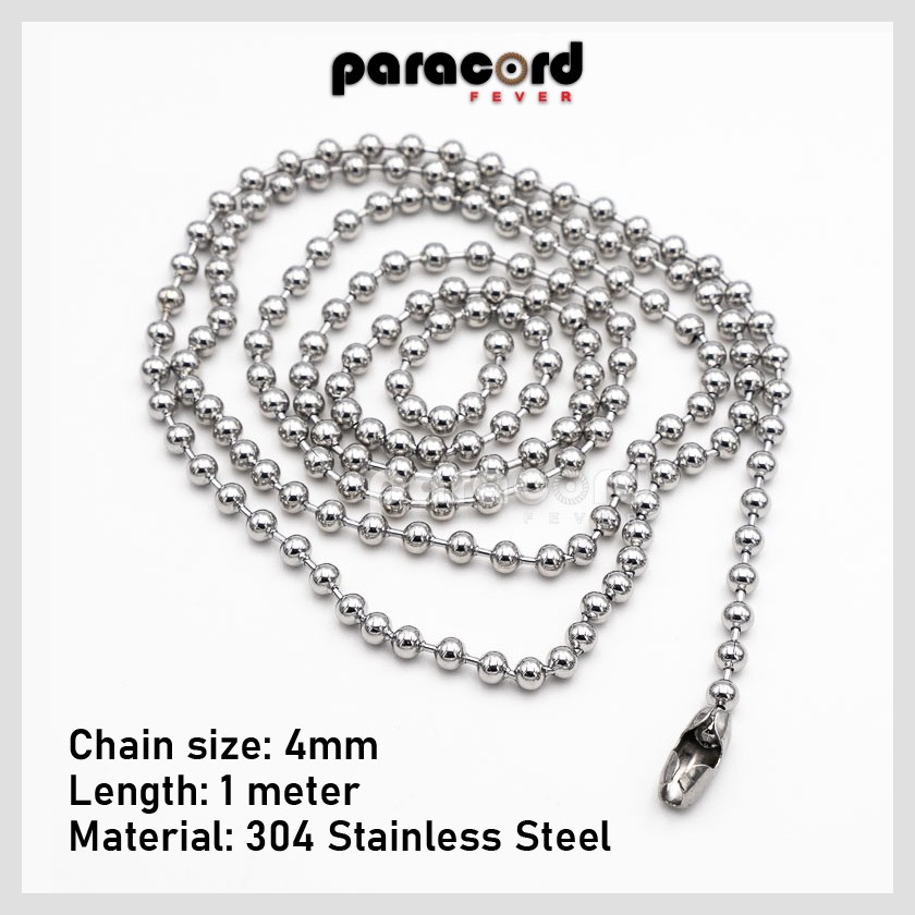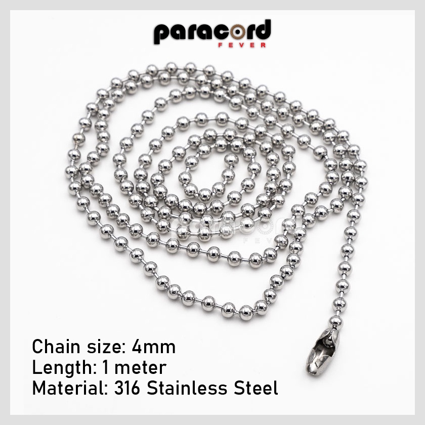 1 Meter Military Army Tag Stainless Steel Ball Pendant Chain Necklace Rantai Leher Askar