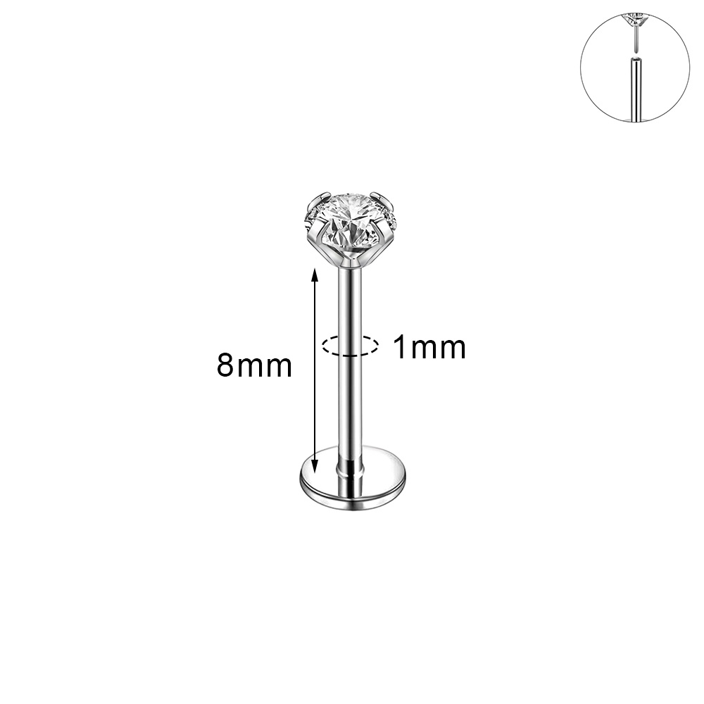1 PC 0.8/1/1.2mm Stainless Steel Plug In Style Lip Labret Piercing Crystal Lip Stud Conch Piercings Cartilage Earrings