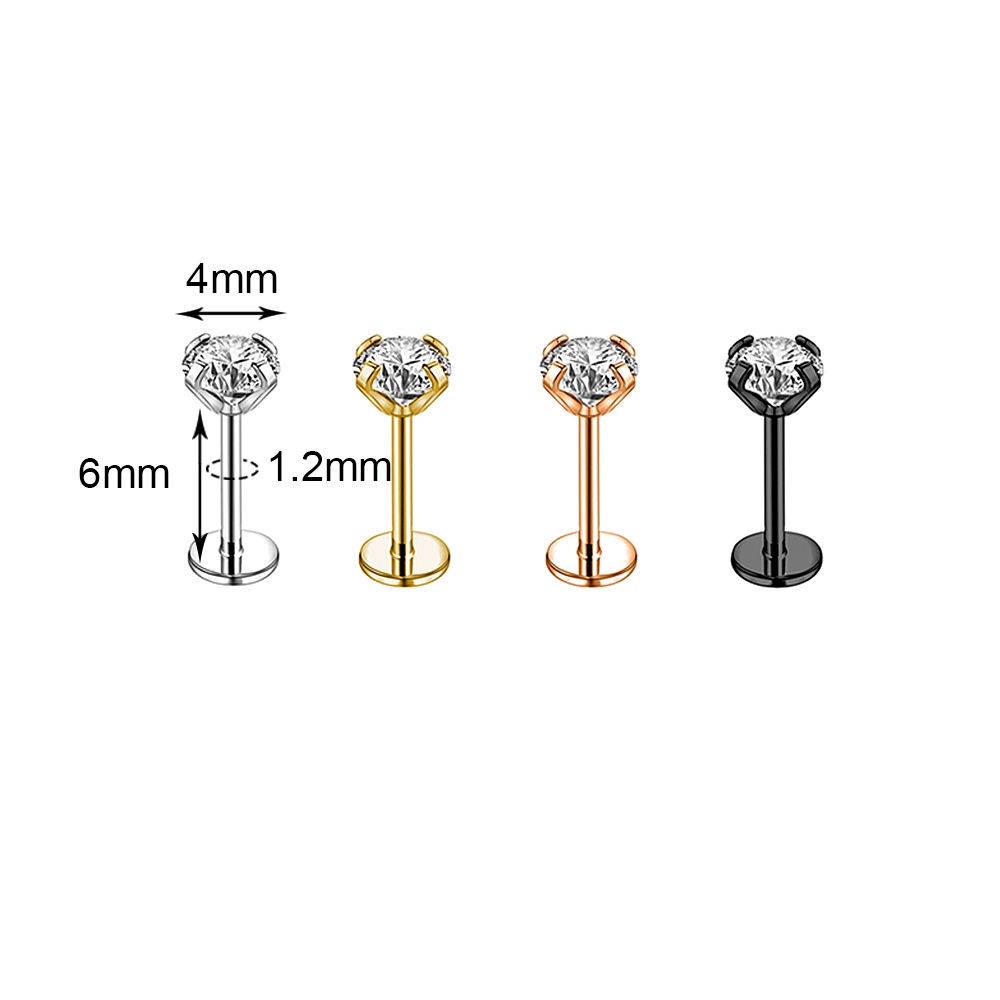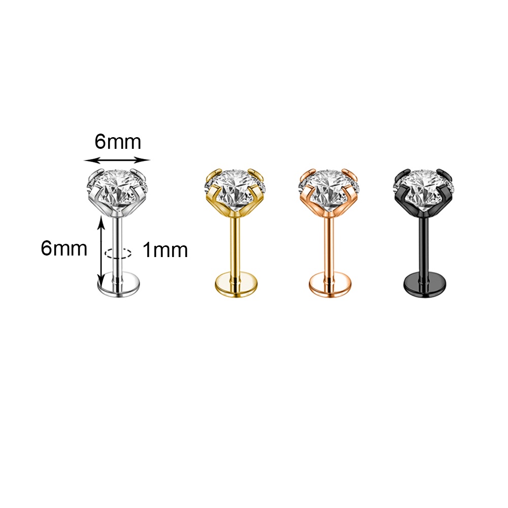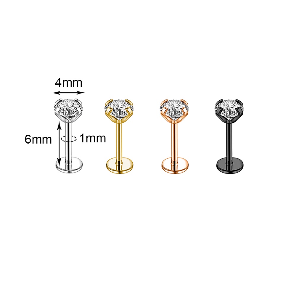 1 PC 2/3/4/5/6mm Stainless Steel Labret Piercing Crystal Lip Studs Cartilage Earrings Helix Tragus Conch Ear Piercings