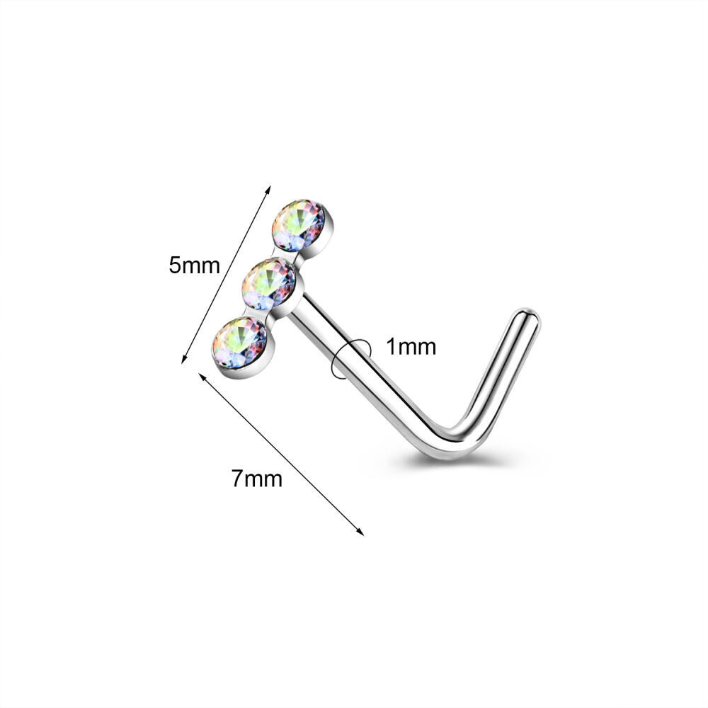 1 PC Black Nostril Piercing Triple Rhinestone Nose Stud 316L Stainless Steel Nose Piercing 18/20G Nose Piercing Stud