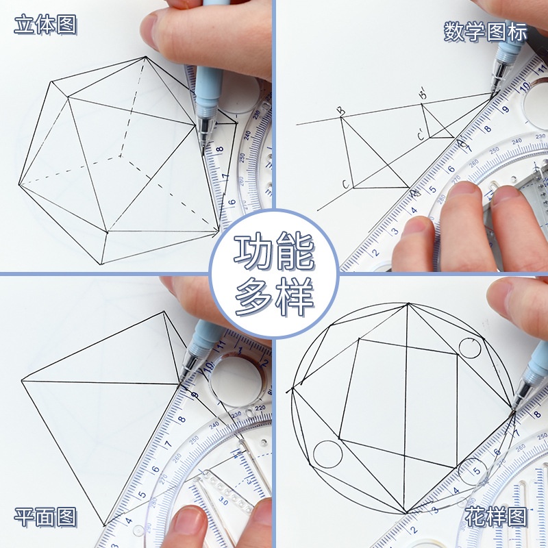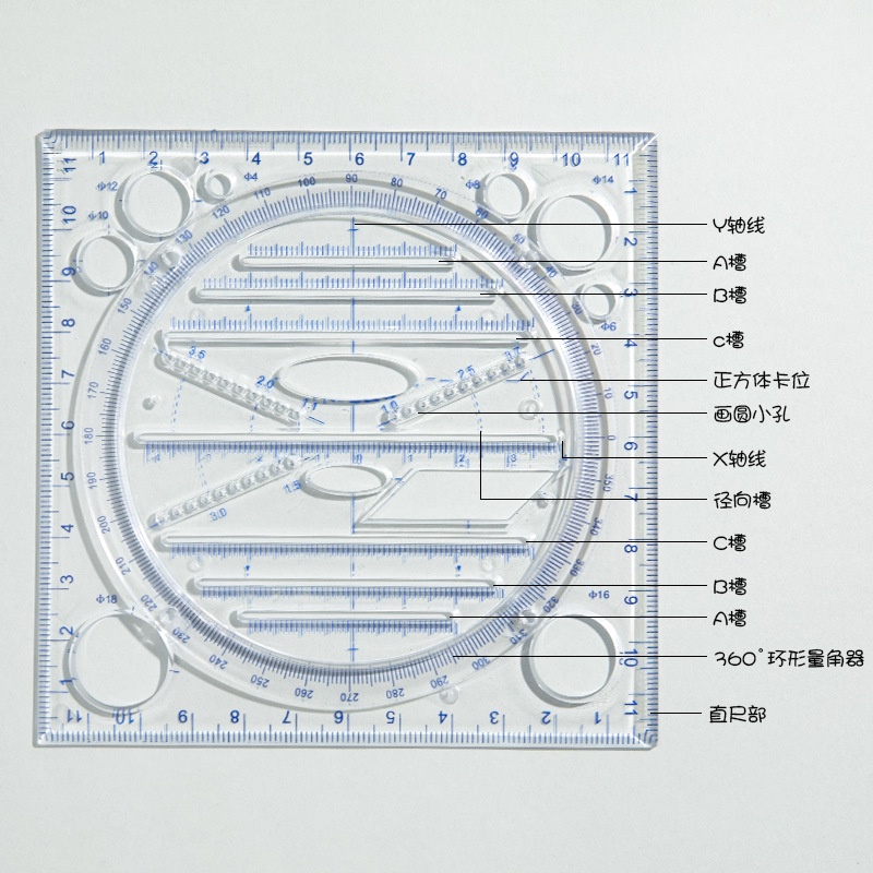 1 PC Creative multi-functional geometric figure painting ruler junior high school mathematics template ruler painting protractor pattern ruler