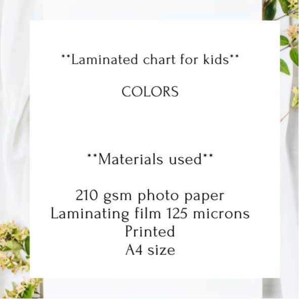 1 PC. LAMINATED CHARTS "COLORS" EDUCATIONAL CHART FOR KIDS (A4 SIZE)
