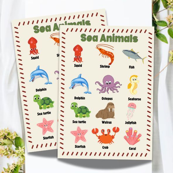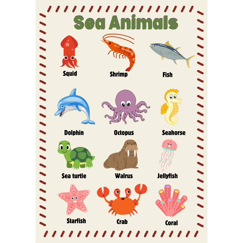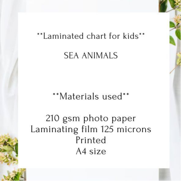 1 PC. LAMINATED CHARTS "SEA ANIMALS" EDUCATIONAL CHART FOR KIDS (A4 SIZE)