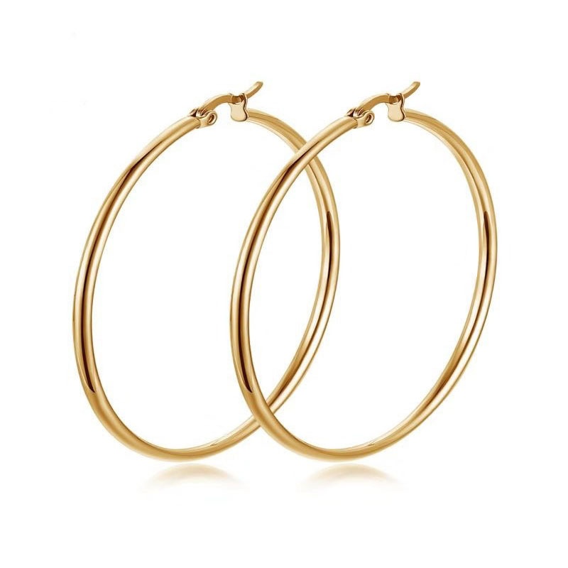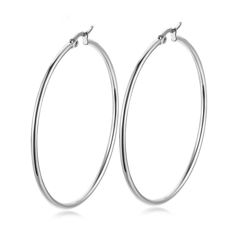 1 Pair 10mm-70mm Sterling Silver Color Hoop Earrings Big Stainless Steel Circle Earrings Bow Earrings For Women