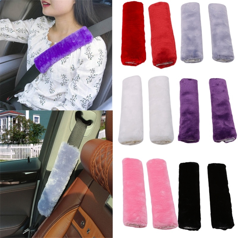 1 Pair 2Pcs Fashion Soft Plush Non-slip Safety Belt Shoulder Protection Multicolor Cover Car Headrest Shoulder pads Auto Seatbelt Sets Car Thick Plush Cushions Driving Seat Belt