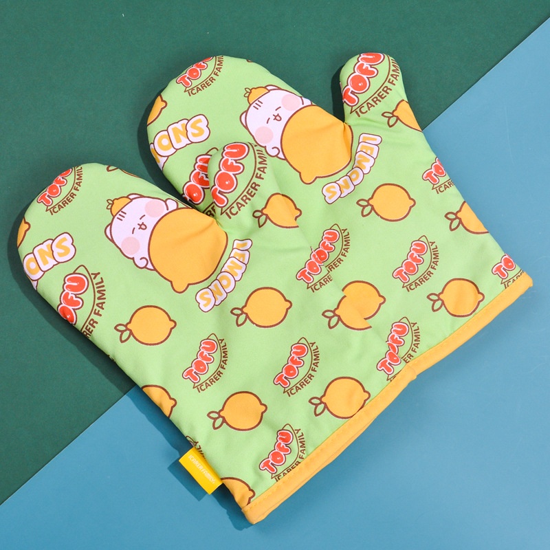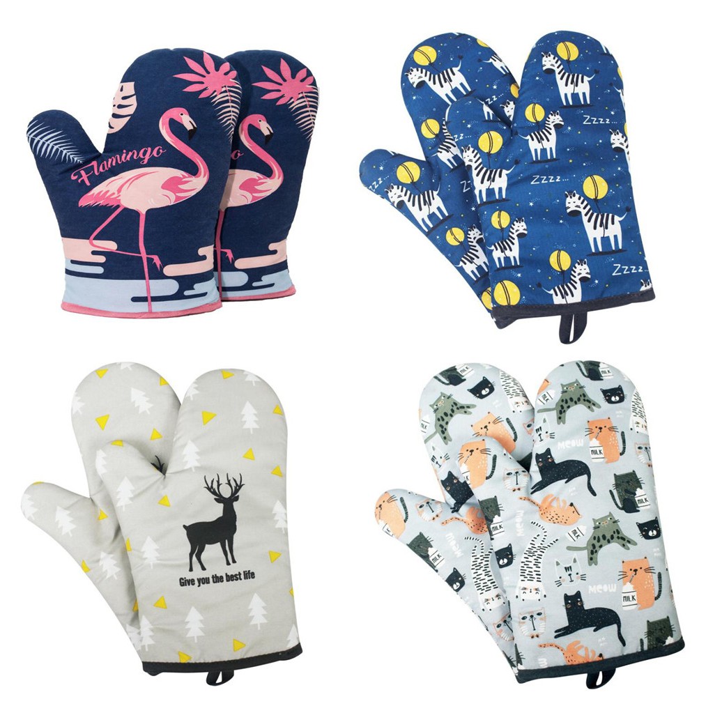 1 Pair Cooking Microwave Oven Glove Mitt Insulated Non-slip High Temperature Oven Gloves