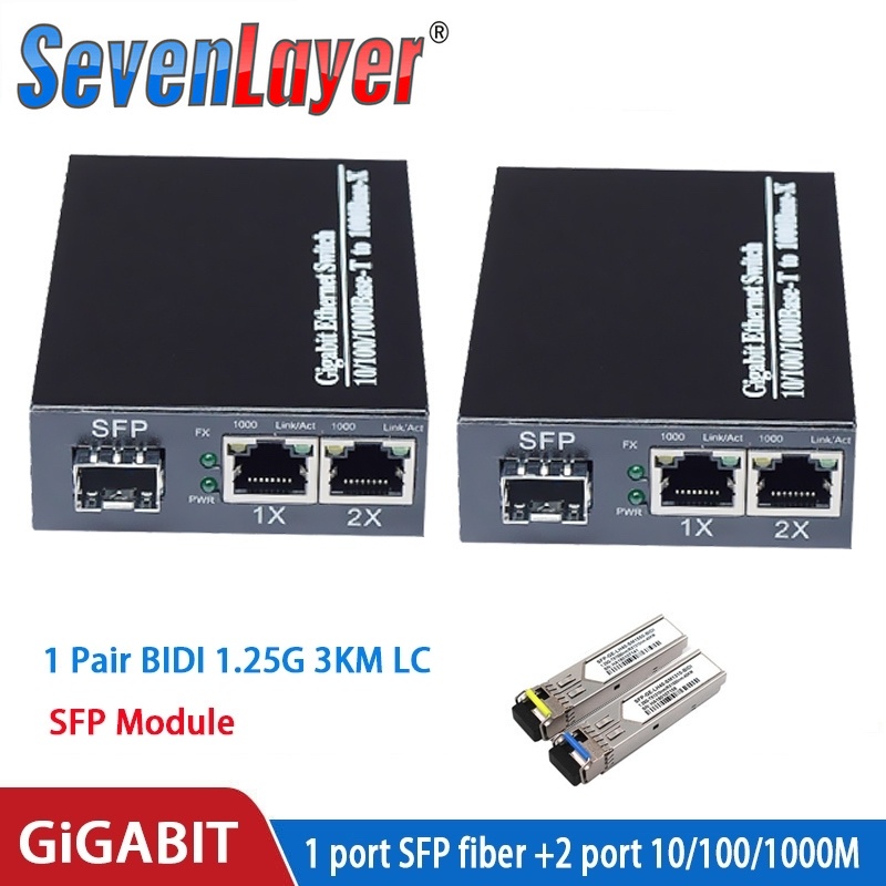 1 Pair Fiber Optical Media Converter 1 Port SFP to 2 RJ45 with 1 Pair LC/SC SFP Module 3/5/20 KM Gigabit Optical Fiber Ethernet 10/100/1000M