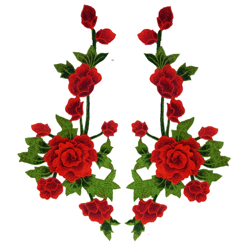 1 Pair Flower Embroidered Cloth Patch Repair For Women Cloth Decoration Applique Chinese Style 35*15CM