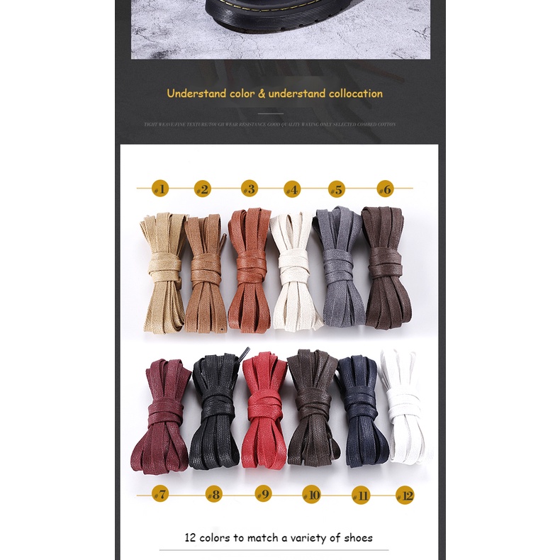 1 Pair Waxed Cotton Shoelaces 0.8CM Width Flat Waterproof Shoe Laces Unisex Boots Casual Sneakers Shoelace Leather Laces Shoes