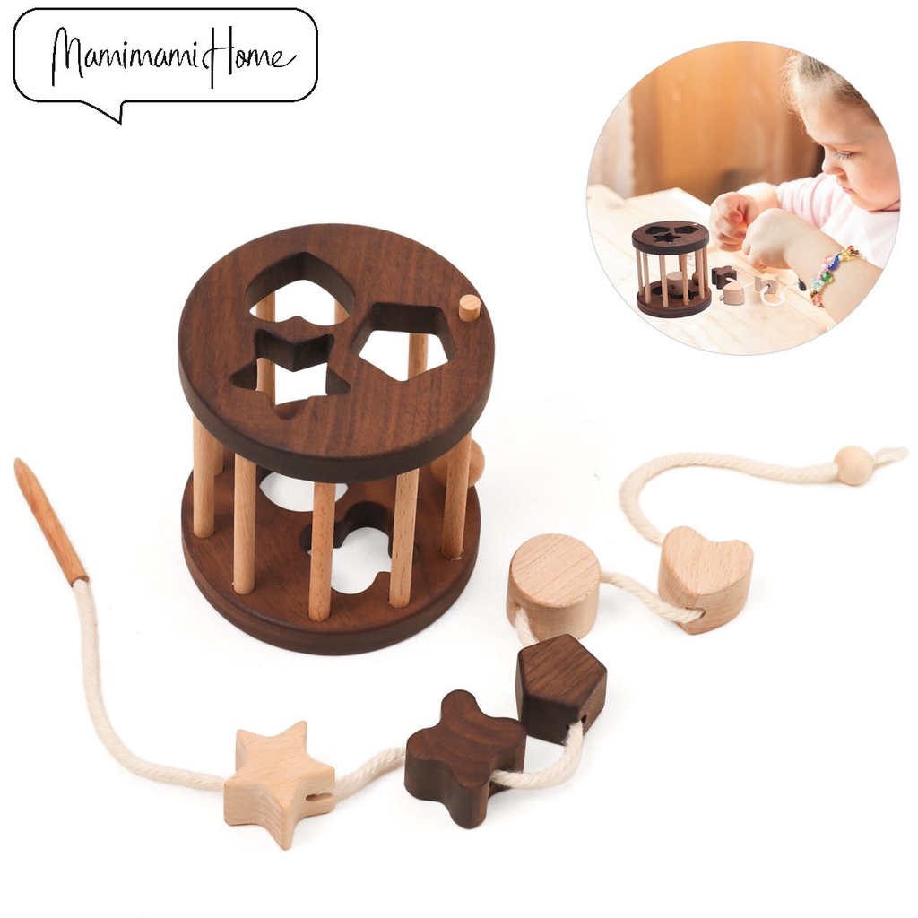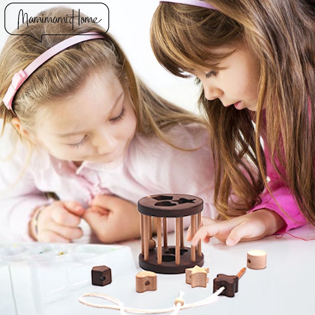 1 Pc Stringing Wooden Toys Cognitive Toys Wooden Geometric Montessori Early Education Toddler Toys