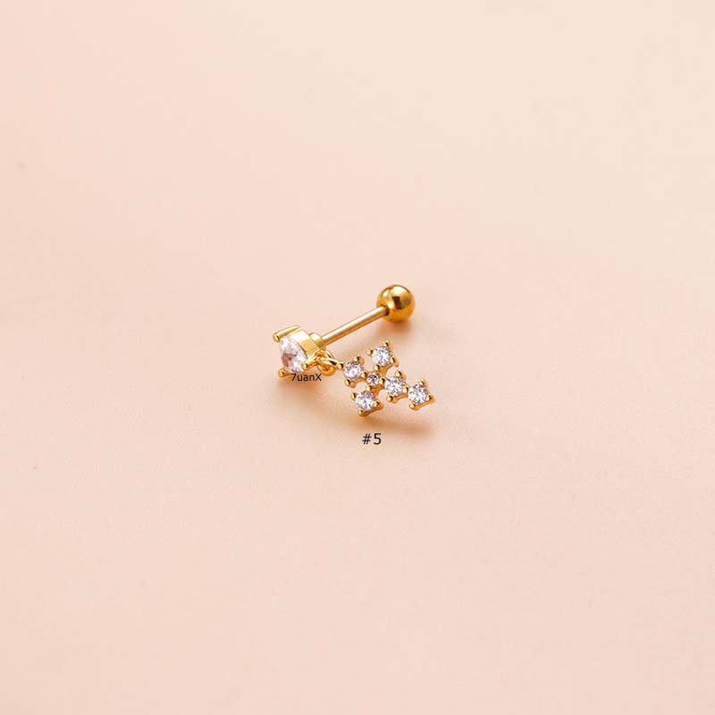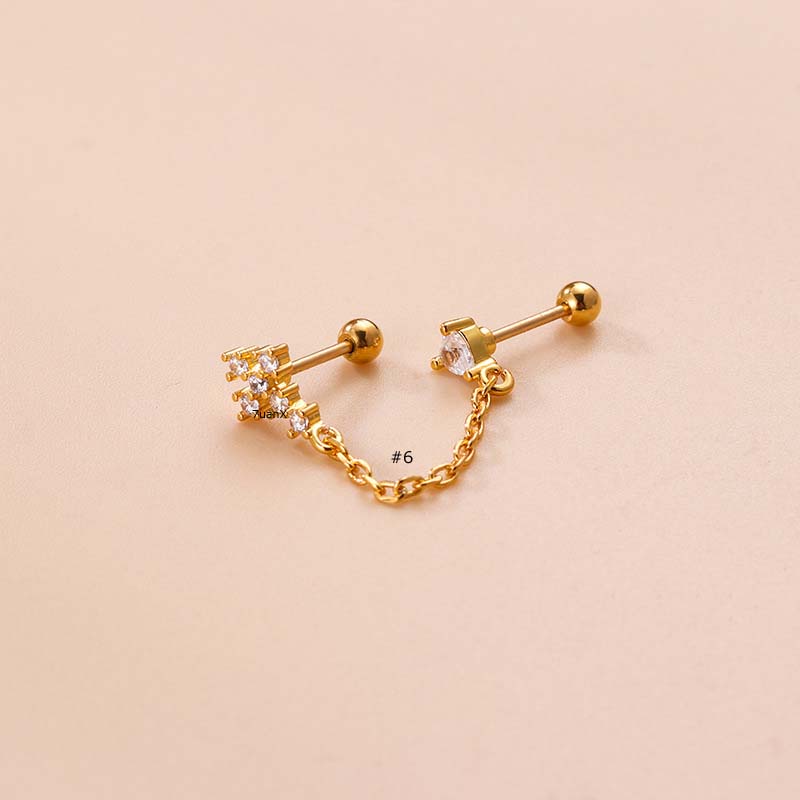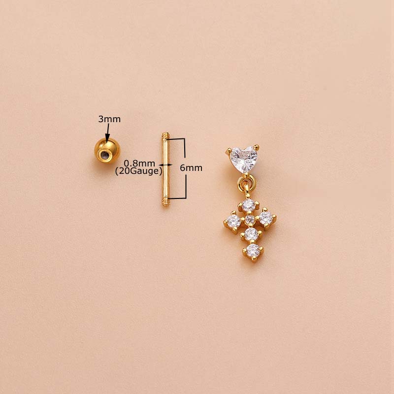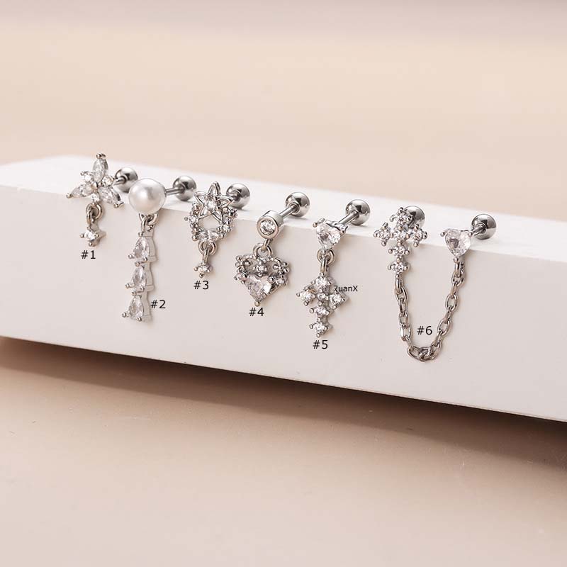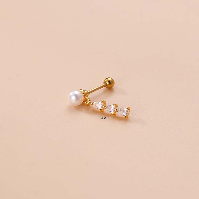 1 Piece Pearl with Stainless Steel Chain Earrings Cross Dangle Cartilage Tragus Helix Upper Lobe Pinna Piercing Ear Stud Gold Silver