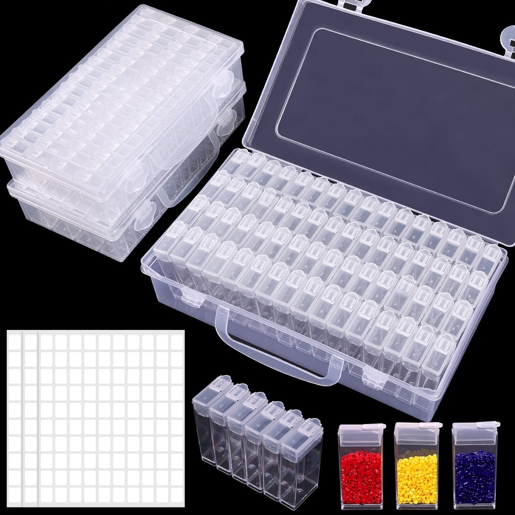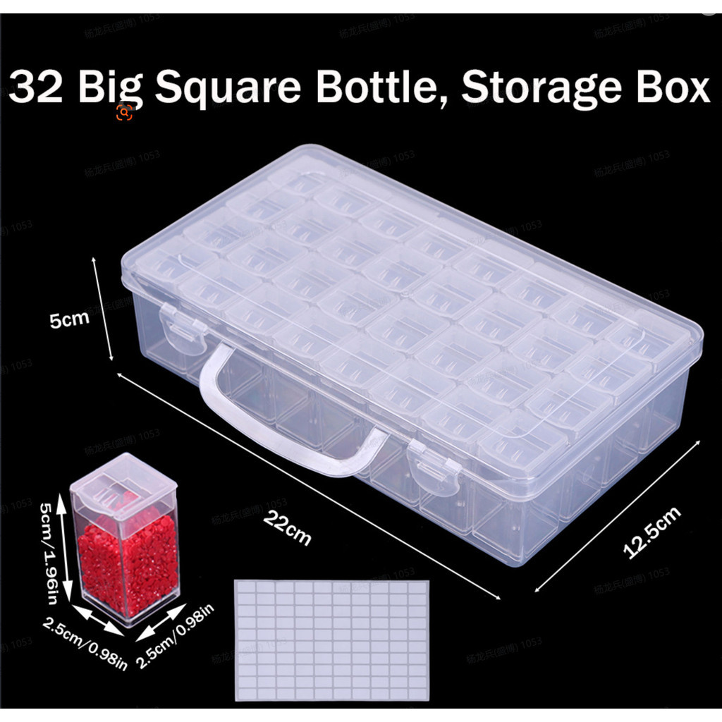 1 Piece Set 64 Grid Diamond Painting Tool Box Container Craft Storage Box with Adjustable Partition, Suitable for Beads, Art DIY, Crafts, Jewelry, Plastic Storage Box with Label Stickers