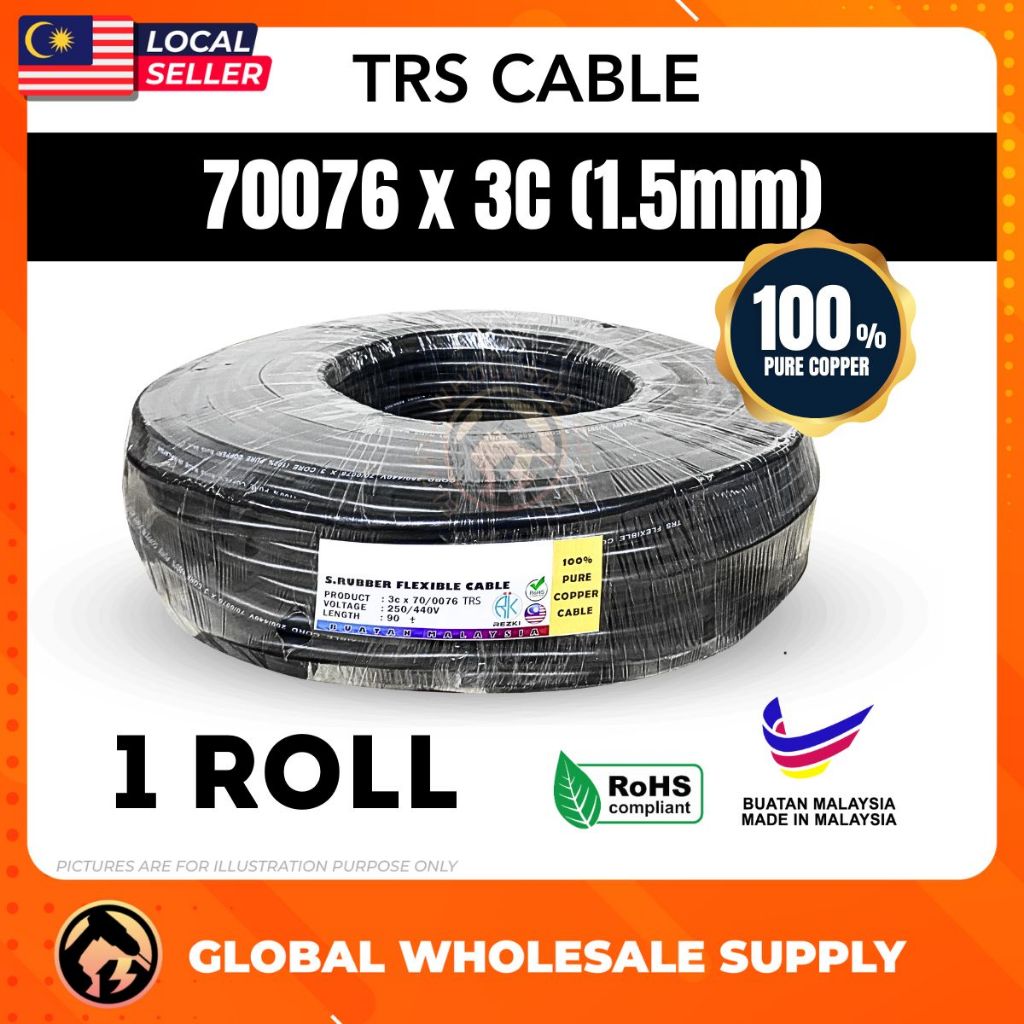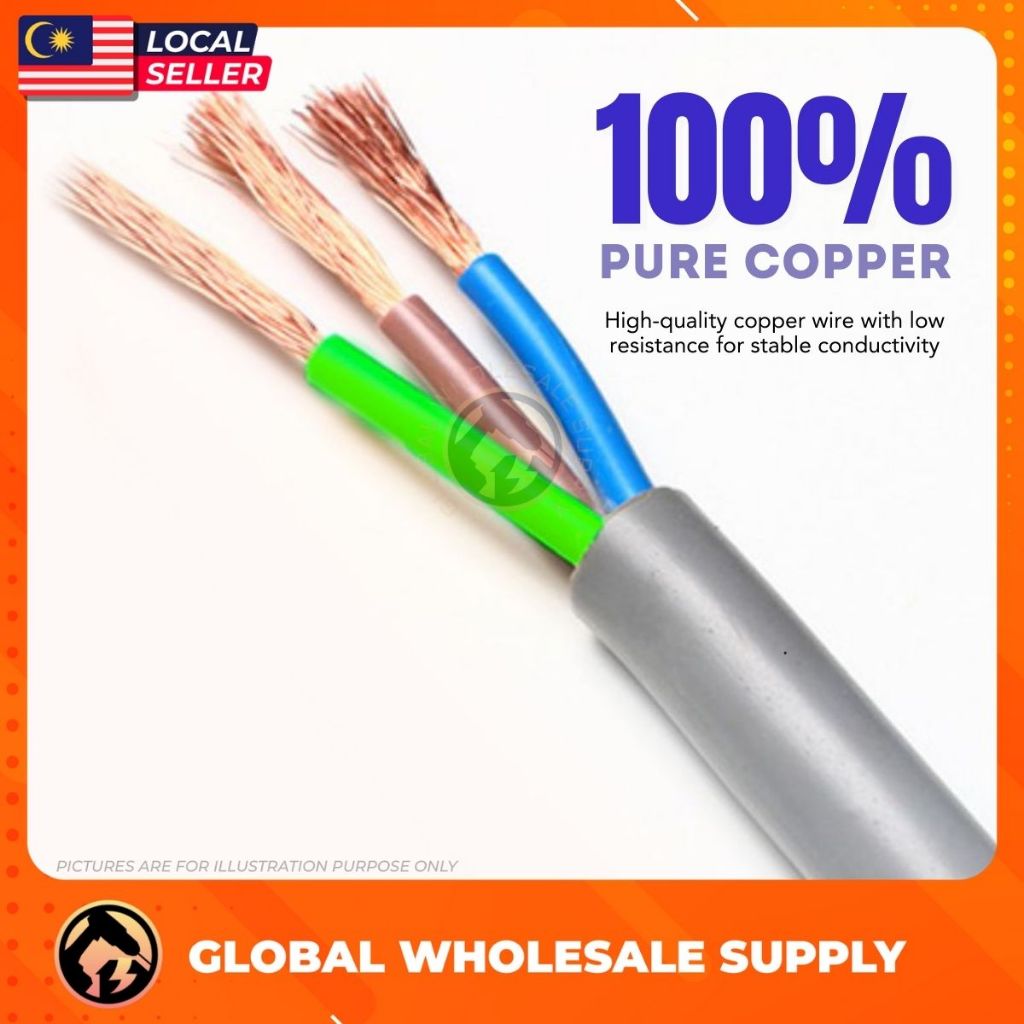 1 ROLL Wire 3 Core Wire Wayar Copper Wire 2.5 mm Cable Flexible Cable Wiring Wayar 3 Core Wayer CCTV Cable Eletrik Cable