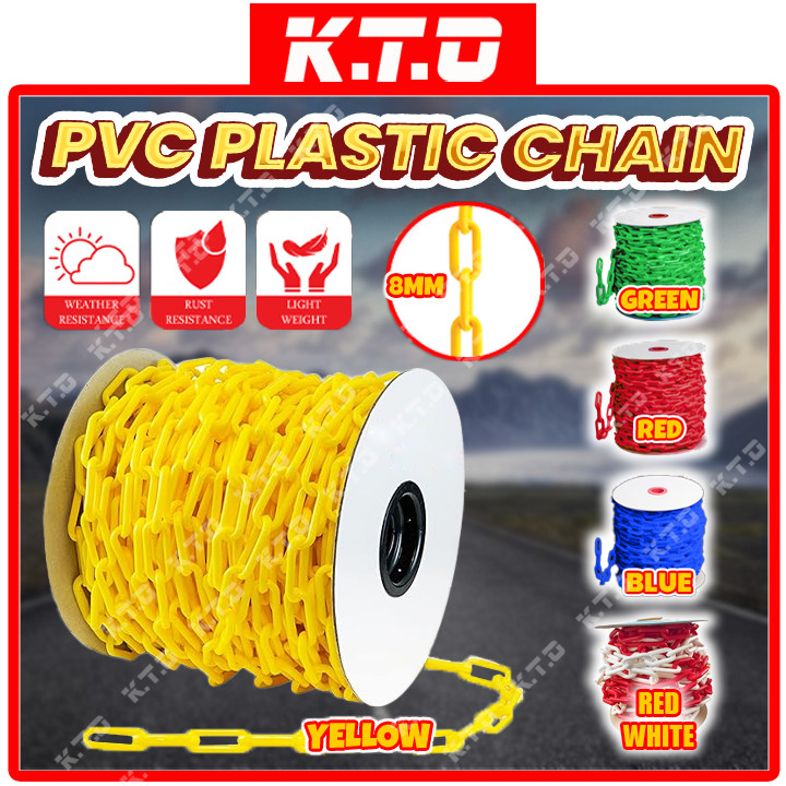 1 Roll 8mm x 20m Safety PVC Plastic Chain Barricade PVC Link Chain Rantai Plastik