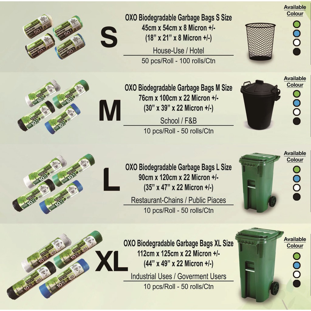 1 Roll CLEAN GUARD Cleanguard Oxo Biodegradable Green Garbage Bag & DrawTape Draw String Available size S,M,L,XL
