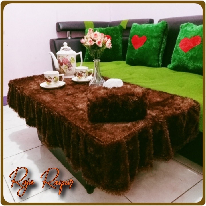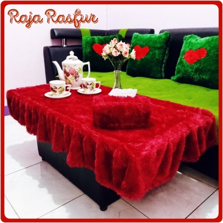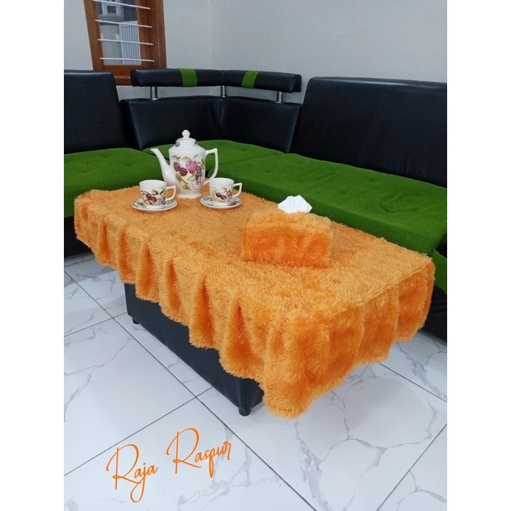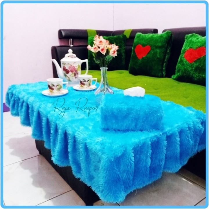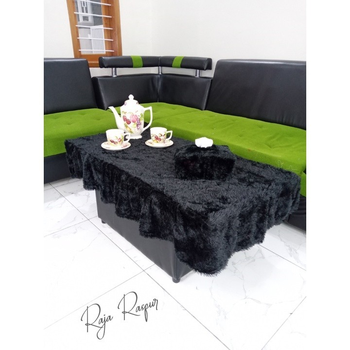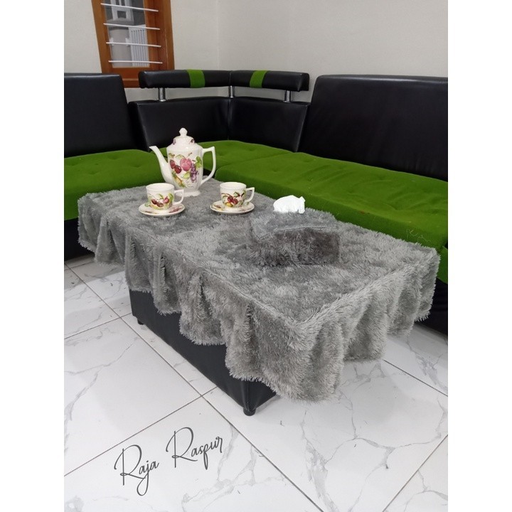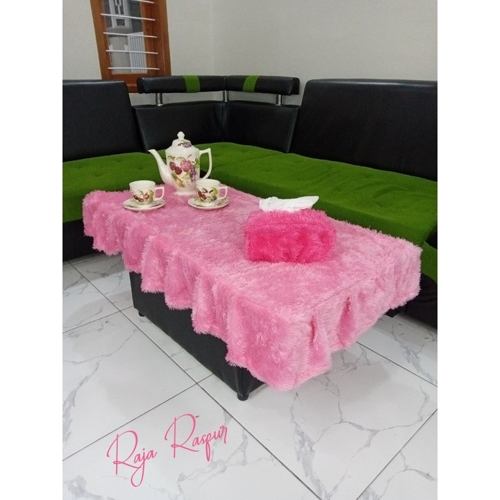1 SET tassel fur tablecloth + fur tissue cover sheet alas meja makan