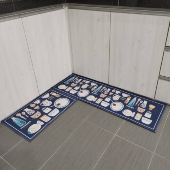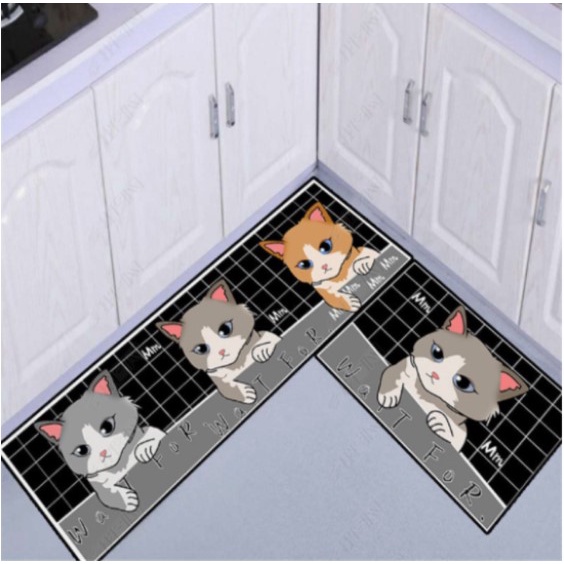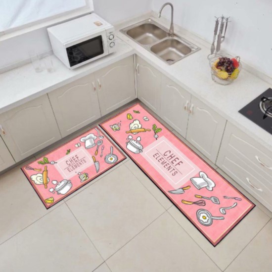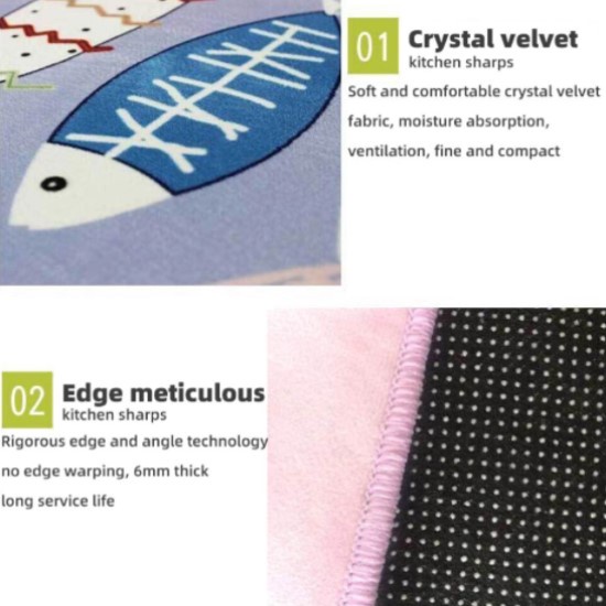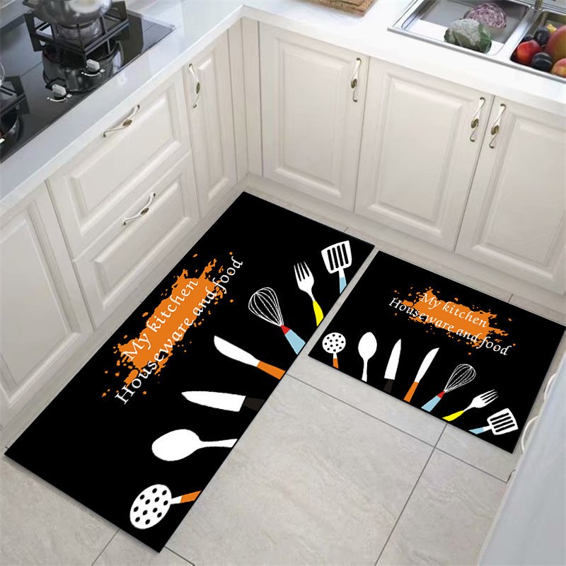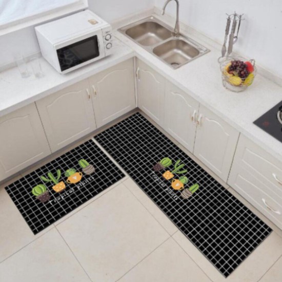 1 Set [2 in 1] Velvet Kitchen Mat Floor Mat Anti Slip 3D Printing Modern Design Carpet Kitchen Alas Kaki Dapur