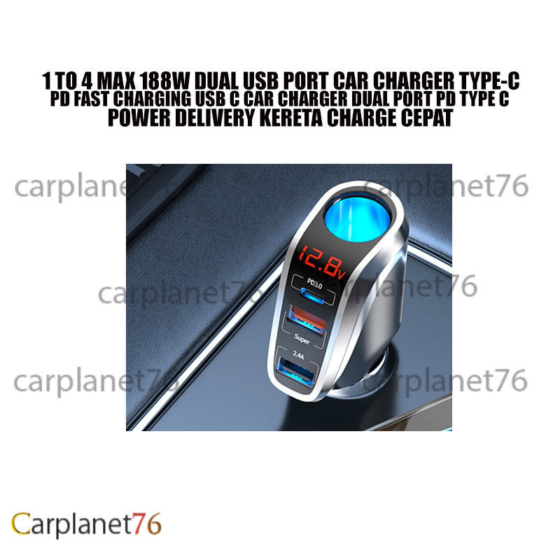 1 TO 4 MAX 188W DUAL PORT TYPE-C FAST CHARGING USB C CAR CHARGER DUAL PORT PD TYPE C POWER DELIVERY KERETA CHARGE CEPAT