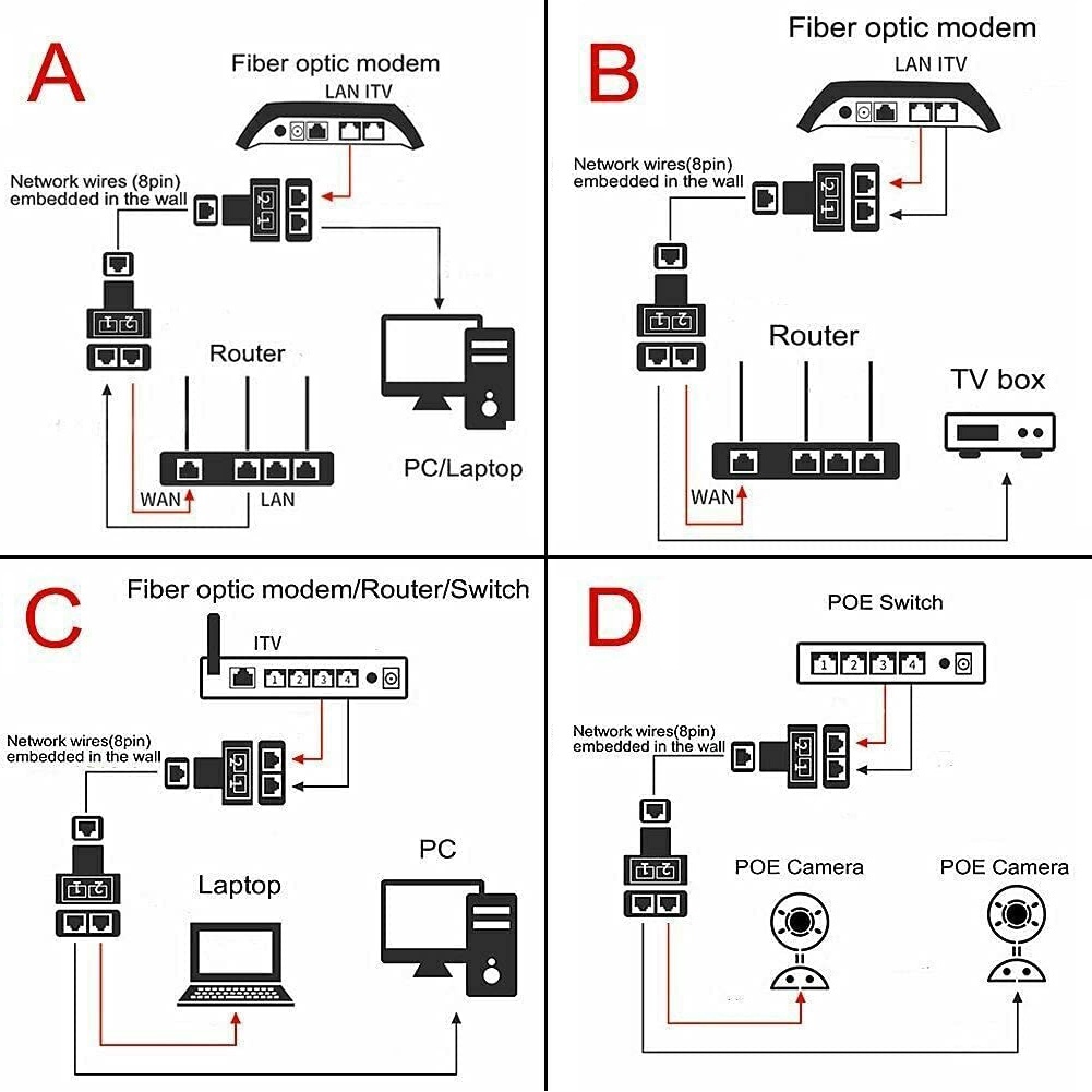 1 To 2 Ways LAN Ethernet Network Cable RJ45 Female Splitter Connector Adapter For Laptop Docking Stations