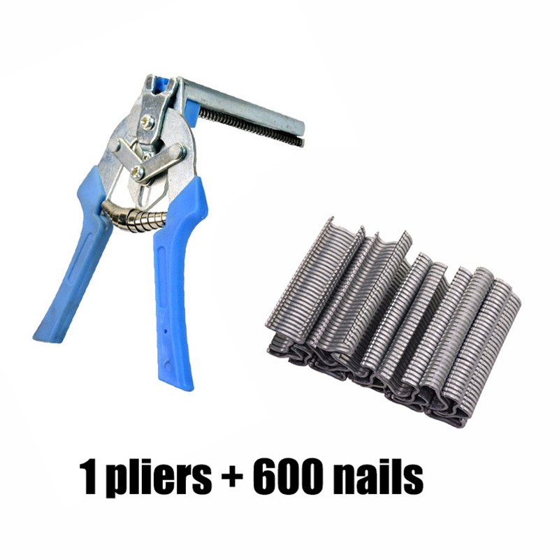 1 fasten clip animal wire cage tie cage clip cage installation clamp clip pliers + 600PCS M nail repair chicken rabbit bird quail cage
