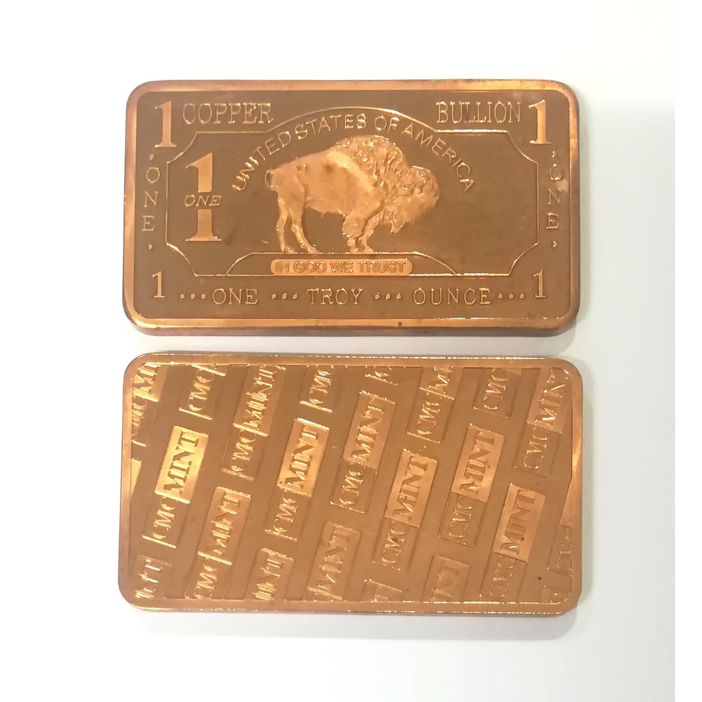 1 oz One Troy Ounce USA American Buffalo .999 Fine Copper Bullion Bar Cu Element CMC 1oz