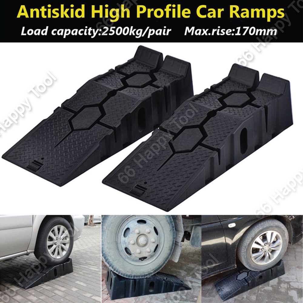 1 pair (2pcs) Plastic Car Ramps Lightweight Portable Durable Heavy Duty Plastic Threshold Ramp Kit For Vehicle
