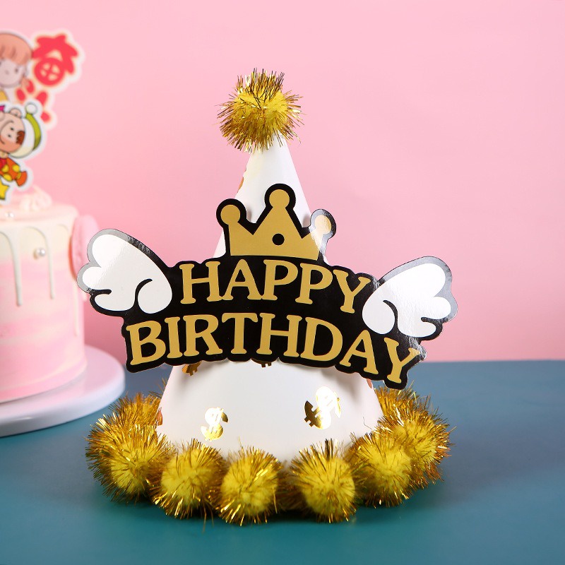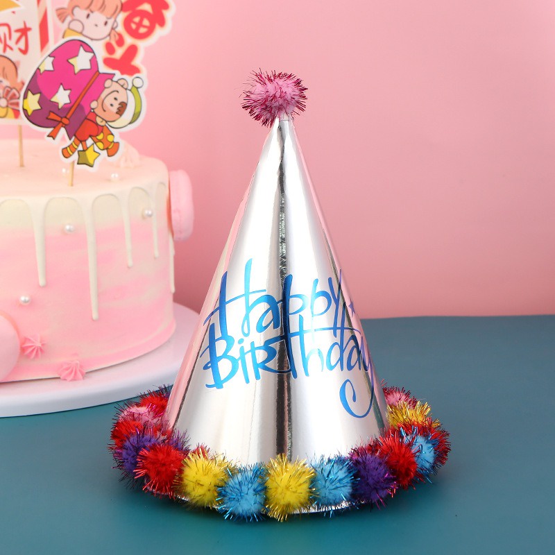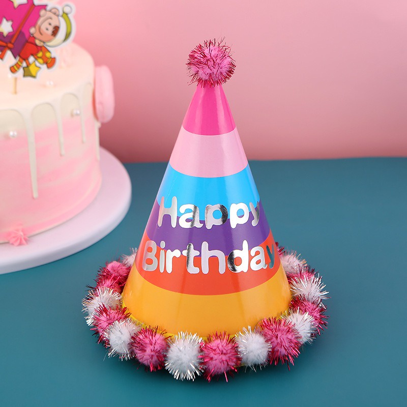 1 pcs Hari Jadi Topi Happy Birthday Party Hat POM POMS Child Adult Birthday Gift Birthday Decoration