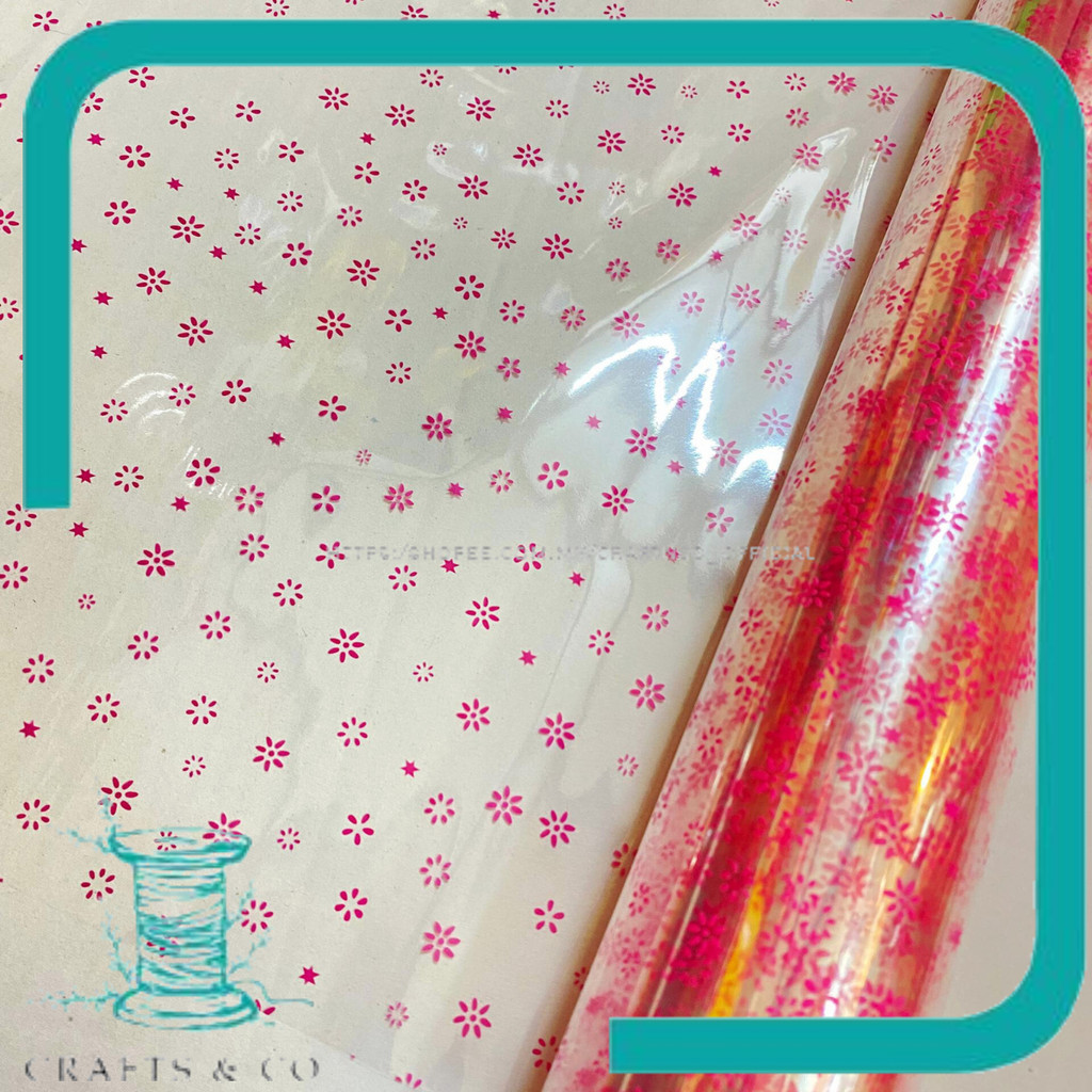 70 METERS FLOWER DOT /BRAND DOT HAMPER WRAPPING OPP PLASTIC / PLASTIC PEMBALUT HAMPER 70 METERS (LEBAR 90CM -SIZE BESAR)