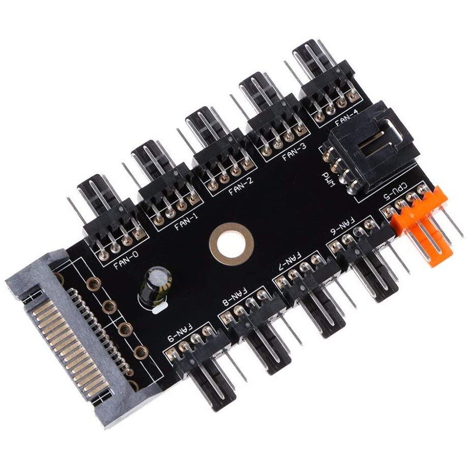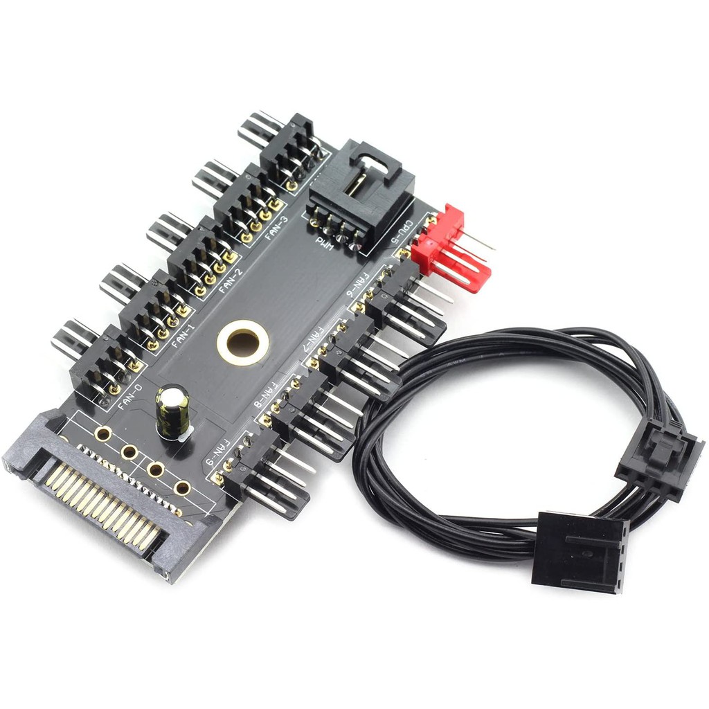 1 to 10 Port PC Cooling 4 Pin PWM Fan Hub Splitter SATA Cable 12V Powered
