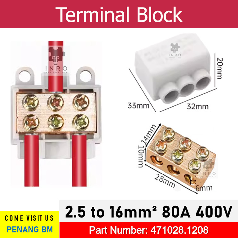 1 to 2 , 1 to 4 , 1 to 3 Terminal Block 4mm2 6mm2 16mm2 35mm2 Penyambung Wayar Sambungan Kabel electrical wire connector