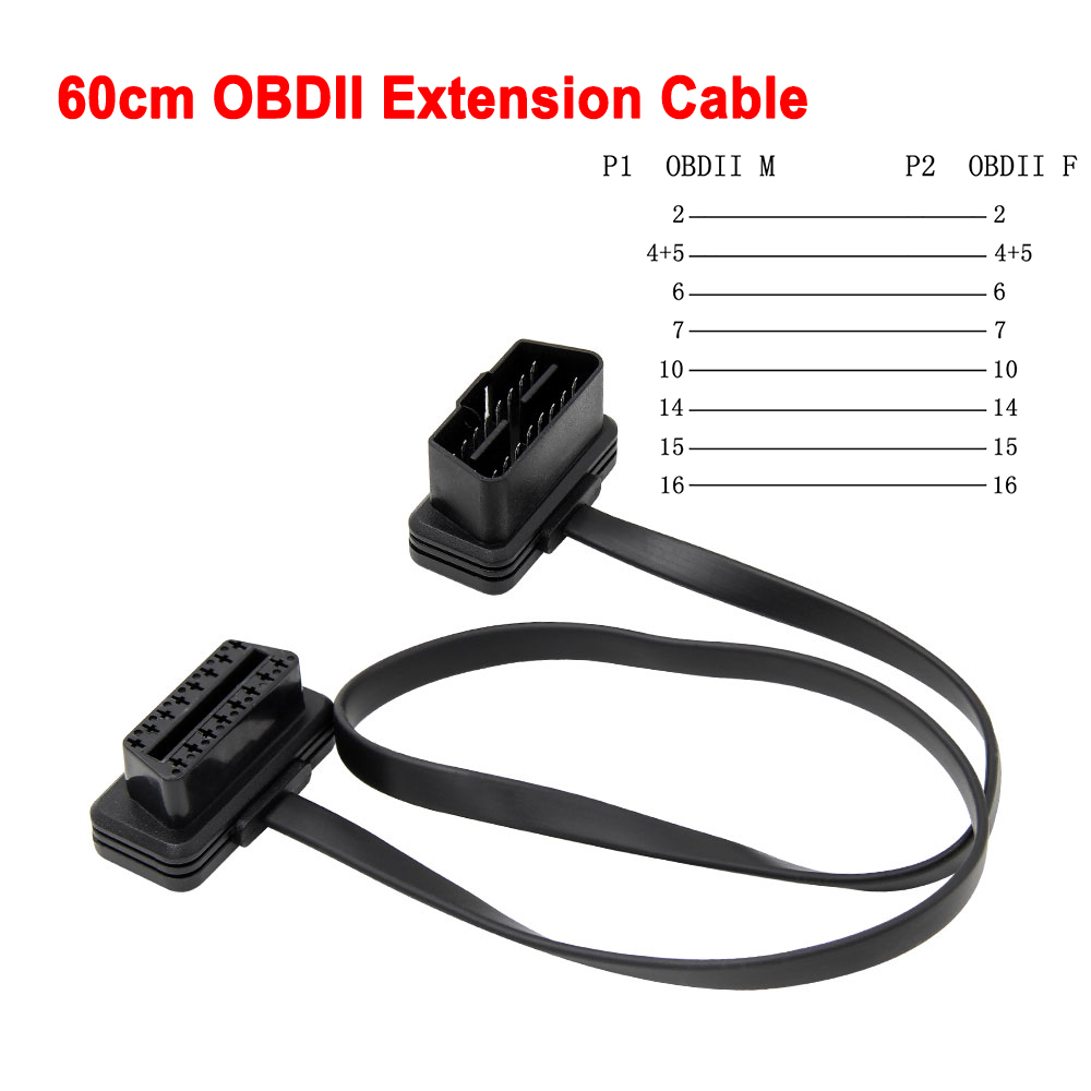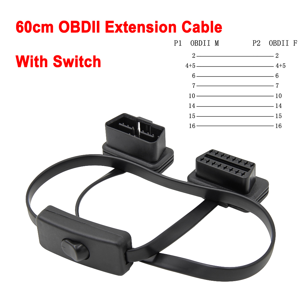 1 to 2 30/60cm 16Pin Male to Female ODB2 Car Converted Cable OBD2 16 Pin Flat Extension Cable With Switch ODB 2 Connector Car Diagnostic Tool Auto Scanner Connection Tool