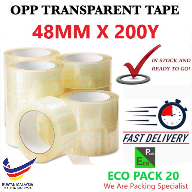 1 tube 6 rolls Opp Transparent Tape OPP PACKAGING TAPE CLEAR 48MM X 40Y/90Y/200Y cellophane tape clear MadeinMalaysia