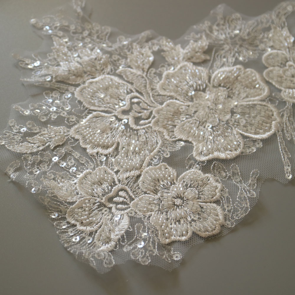 1 yard luxury beaded embroidery lace appliques for wedding dresses Rhinestone lace applique patches Embroidery lace parches