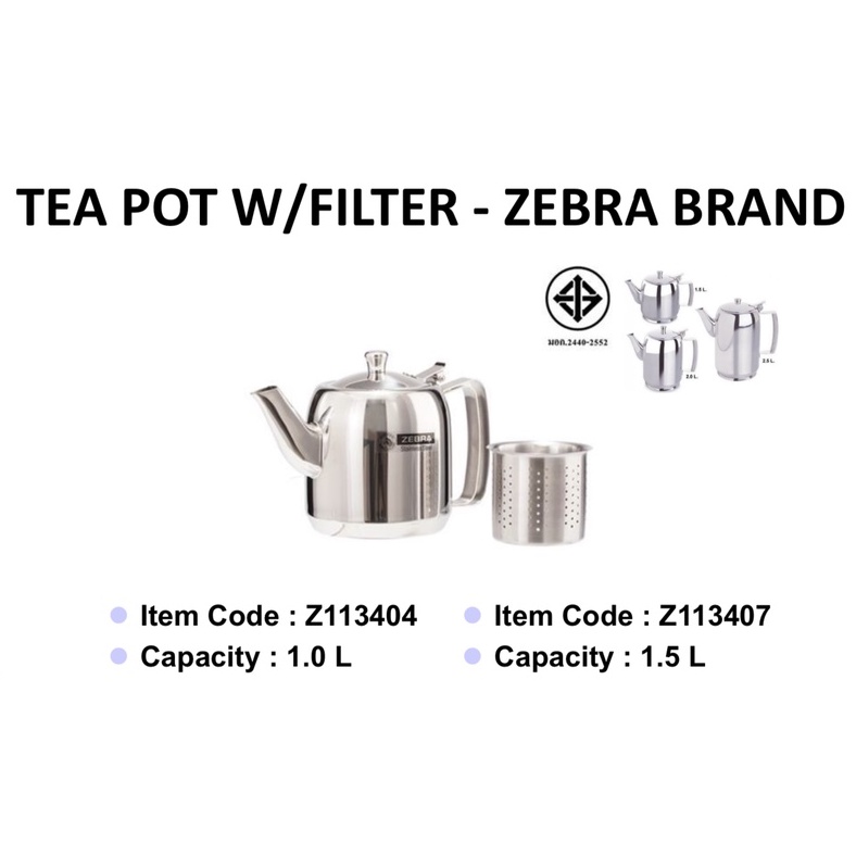 1.0 ltr, 1.5 ltr stainless steel Tea Pot with Filter 100% original Thailand Zebra