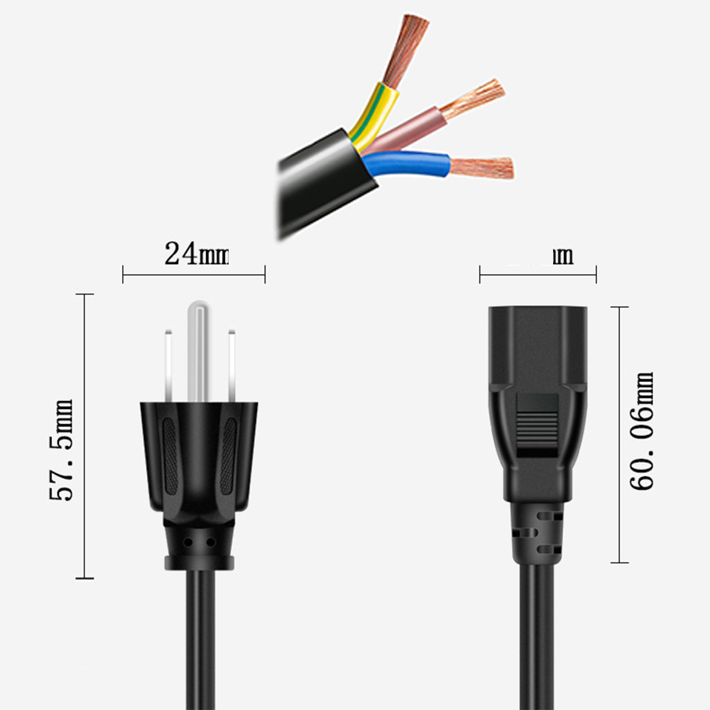 1.2m US Power Cable Euro Plug IEC C13 AC Power Supply Cable Extension Cord For PC Computer Monitor Samsung TV Speaker